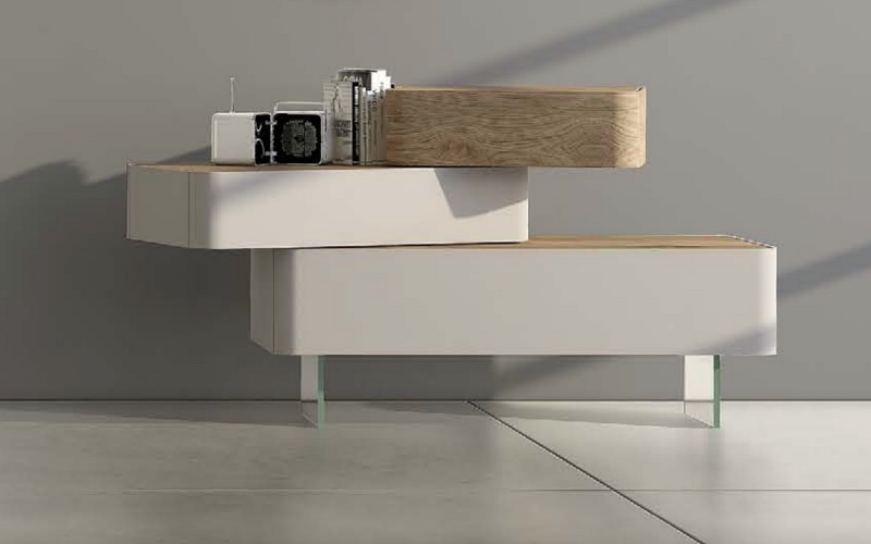 Hai esigenze particolari, dimensioni, finiture, quantità, trasporto, ecc…?Composizione Comò Elite di Voltan, composta da tre cassetti di misure e finiture differenti, sovrapposti e sospesi su piedini in vetro che conferiscono leggerezza.