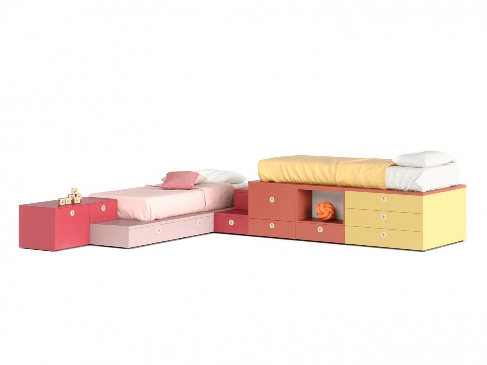 Hai esigenze particolari, dimensioni, finiture, quantità, trasporto, ecc…?Come in un gioco, i letti Regoli si creano accostando tra loro cassetti e vani a giorno, volumi e colori. Il top pianale per il letto è disponibile anche con fermamaterasso, boccole per l’aerazione del materasso o telaio a doghe in appoggio.