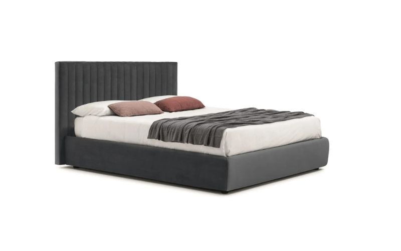 Letto imbottito moderno con ampia testiera imbottita e il comodo vano contenitore rendono il letto matrimoniale Clay un gioiello di design e funzionalità.