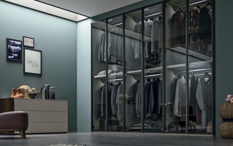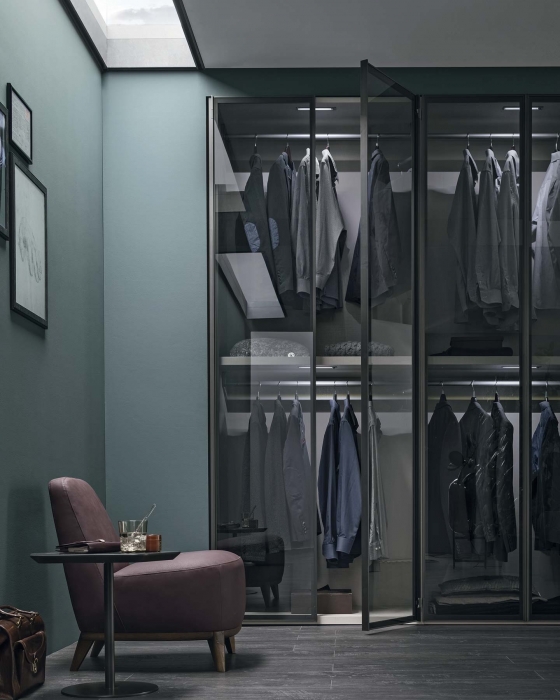 Armadio Metropolis di Tomasella, l’anta in vetro con telaio in finitura antracite reinterpreta la funzione del classico armadio: progettato per “nascondere” indumenti e oggetti, Metropolis mette in vista e in luce lo stile. Una scelta di tendenza.