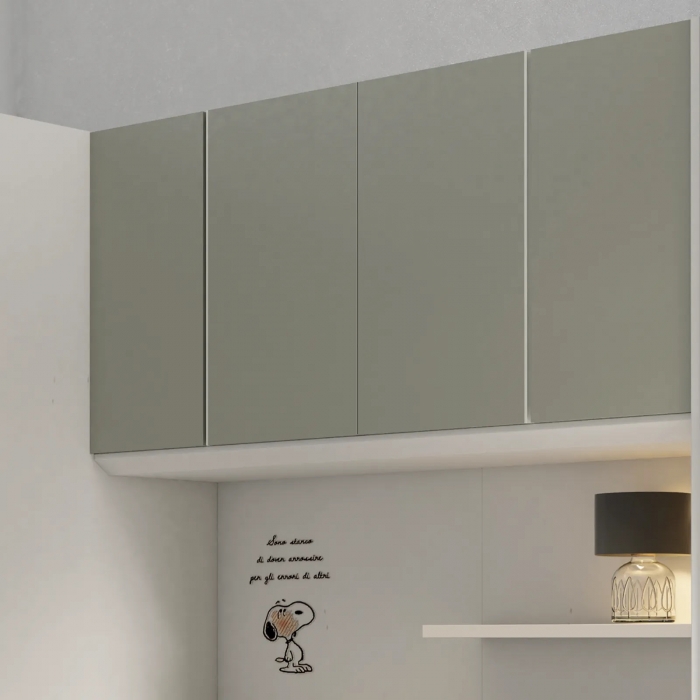 Lo sviluppo in una parete unica rende il Ponte la soluzione ideale anche per ambienti condivisi e di passaggio, come quelli di una seconda casa o di un ambiente a spazio ridotto.