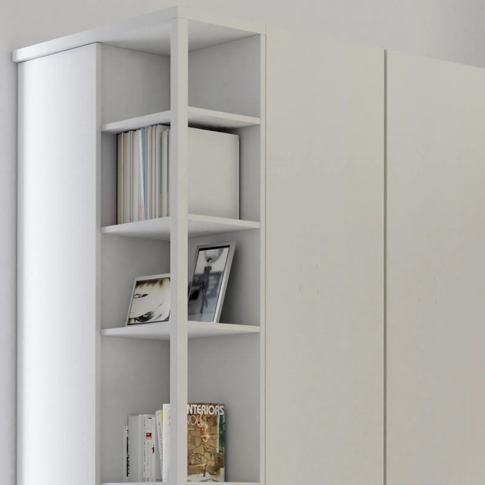 Hai esigenze particolari, dimensioni, finiture, quantità, trasporto, ecc…?La cabina armadio XCAB, in combinazione al ponte, offre tantissimo spazio per il contenimento. Inoltre ogni centrimentro nel vano sottoponte e' sfruttato al massimo, grazie alla mensola e al letto-divano Onda con rete alzante e contenitore.