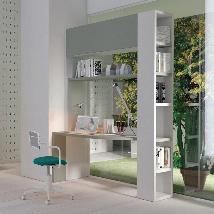 Ciascun oggetto trova la sua collocazione grazie alla libreria terminale Palo Alto ed alla libreria Unika attrezzata anche con un ampio scrittoio sagomato. Soluzione ideale per una parete attrezzata, come per una separazione a centro stanza.