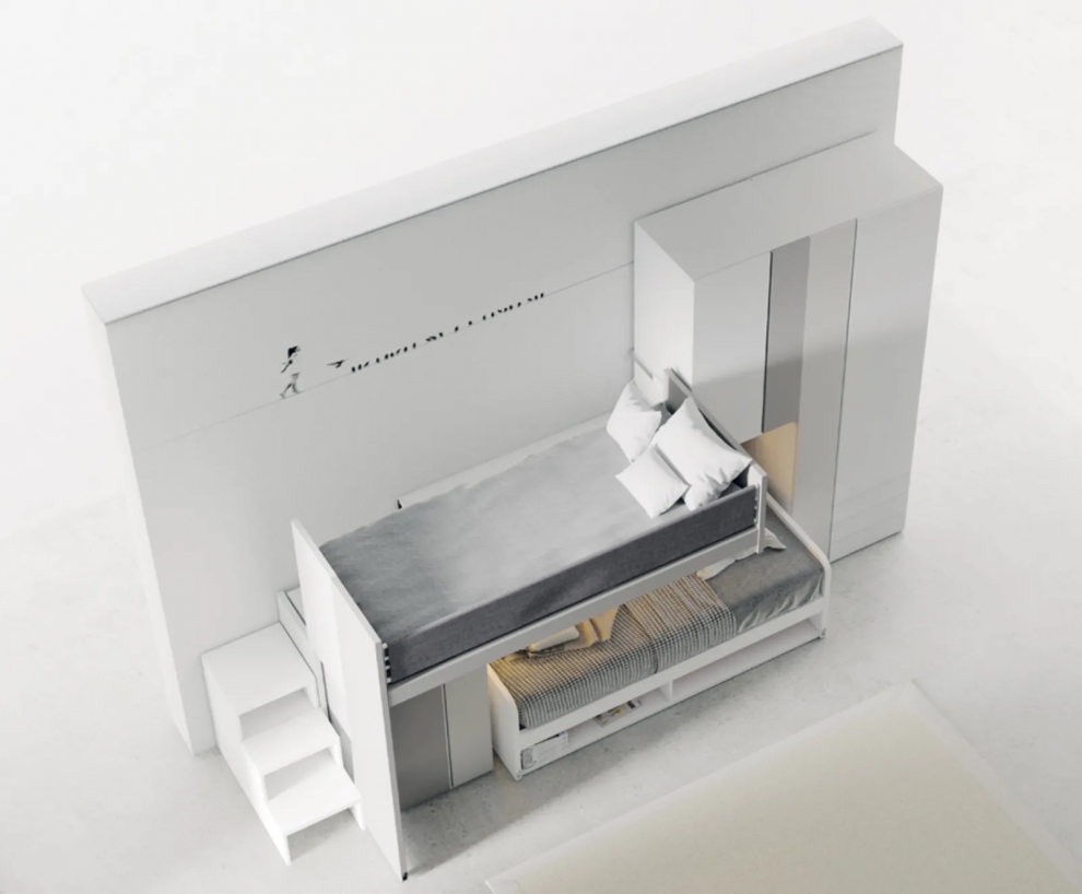 Il soppalco scorrevole Genialponte permette di progettare uno spazio condiviso dove l'individualità non passa in secondo piano.