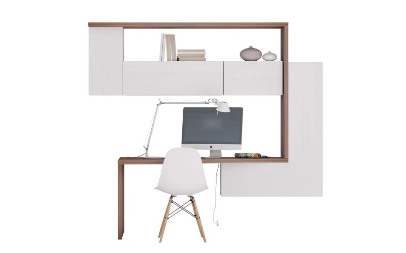 parete attrezzata con scrivania, libreria e pensili